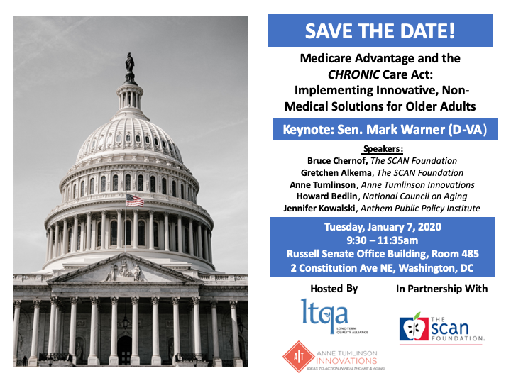 On Tuesday, January 7th, the Long-Term Quality Alliance (LTQA), in collaboration with Anne Tumlinson Innovations (ATI) and with support from The SCAN Foundation, held a public briefing on Medicare Advantage and the CHRONIC Care Act. This briefing served as a public gathering of influential stakeholders across the LTSS spectrum, with a focus on implementation best practices and ways the private sector can take advantage of new flexibilities afforded by the law.
