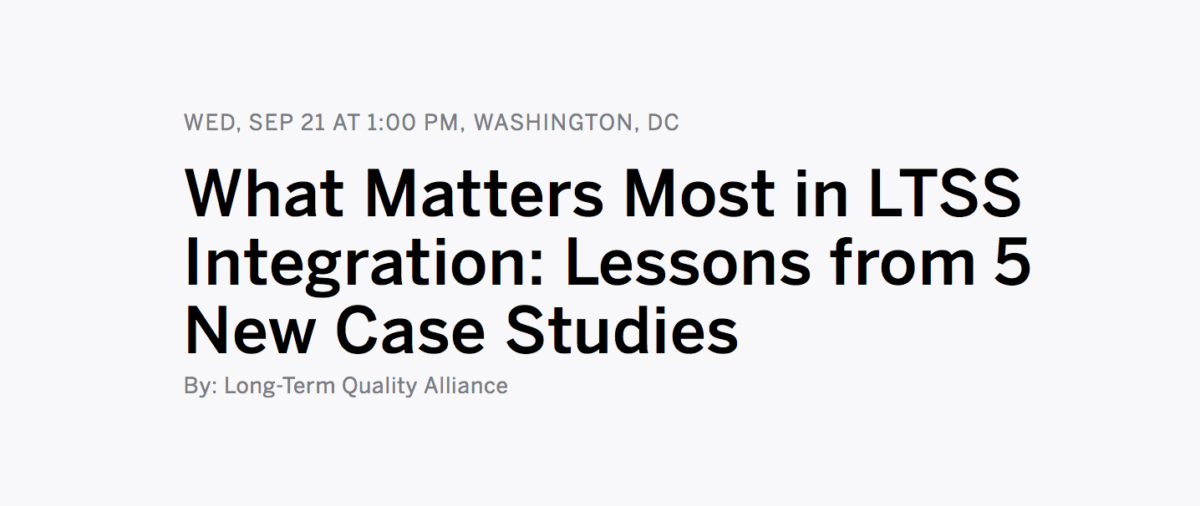 We are excited to share this new research with you! Please join us to discuss cross-cutting insights from the ten case studies on what matters most for successful integration, as well as brand-new analysis on the opportunities and challenges for integrating LTSS using existing Medicare Advantage products. We anticipate to a rich conversation and hope you will join us and contribute to LTQA’s analysis and plans for future work.
