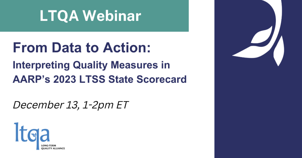 LTQA and AARP held a webinar that delved into how the data insights and promising practices in AARP’s recently released 2023 LTSS State Scorecard can drive strategic action to improve long-term services and supports (LTSS). With a focus on quality measurement in both HCBS and nursing home settings, this webinar explored the 20 new indicators included in this year’s scorecard and new ways of analyzing and displaying data to provide a more comprehensive picture of state performance. Presenters also discussed incorporating equity in LTSS performance using data broken down by race and ethnicity.