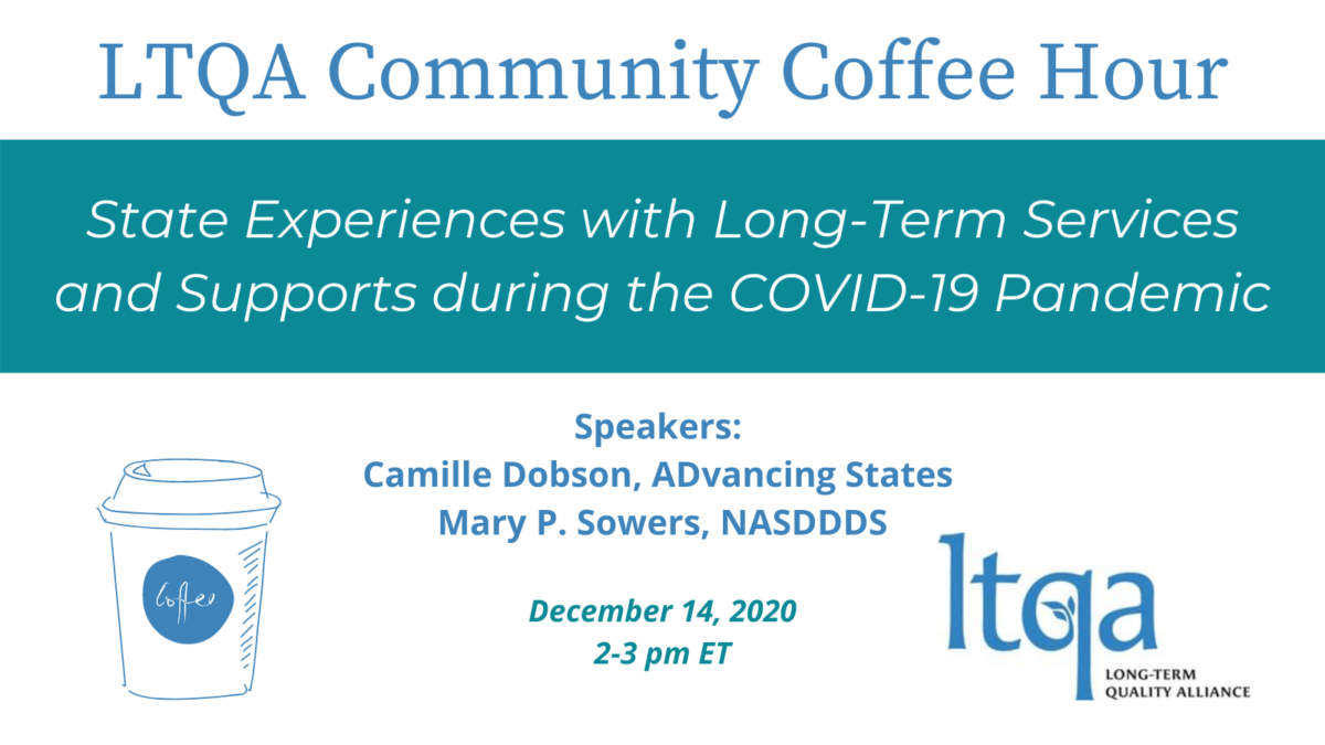 In LTQA’s second Community Coffee Hour on December 14, 2020, Camille Dobson of ADvancing States and Mary Sowers of NASDDDS explored the challenges States have experienced with regard to LTSS delivery during the COVID-19 pandemic, as well as strategies states have used to mitigate these challenges.