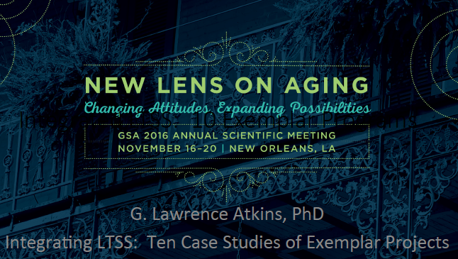G. Lawrence Atkins, Executive Director of Long-Term Quality Alliance, presented findings from 10 case studies of exemplar programs that integrate long-term services and supports (LTSS) with medical care at the 2016 Gerontological Society of America (GSA) Annual Scientific Meeting.
