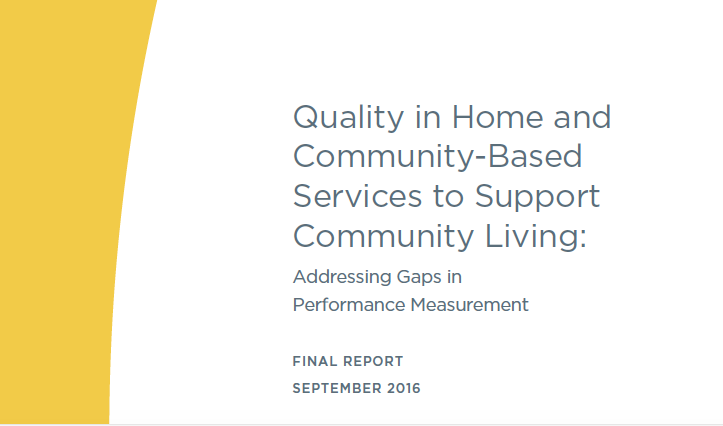 In September 2016, the National Quality Forum released The Quality in Home and Community-Based Services to Support Community Living: Addressing Gaps in Performance Measurement report. This report identifies important elements of a conceptual framework for the quality measurement of home and community-based services (HCBS), as well as characteristics of quality HCBS. It also includes recommendations for the advancement of HCBS quality measurement.