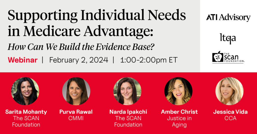 On February 2, LTQA, ATI Advisory, and The SCAN Foundation held a webinar to explore the current landscape of nonmedical supplemental benefits in Medicare Advantage (MA) and how these new benefits are delivering value for beneficiaries, plans, and policymakers. Featuring Sarita Mohanty, President and CEO of The SCAN Foundation, and Purva Rawal, Chief Strategy Officer at the Center for Medicare and Medicaid Innovation (CMMI), this interactive webinar explored next steps to build the evidence base around non-medical supplemental benefits in MA highlighted the importance of data collection efforts to evaluate their impact.
